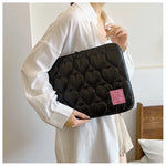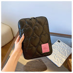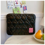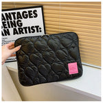 Ajoutez une touche de sophistication à votre quotidien avec cette pochette élégante. Son design noir matelassé en forme de cœurs et sa finition brillante attirent tous les regards, offrant un look à la fois moderne et original. L'intérieur doux protège votre ordinateur des chocs et des rayures. Parfaite pour allier style et protection, elle est idéale pour transporter votre appareil en toute sécurité.